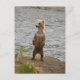 Det här är ett brunbjörn, vid Brooks Falls i Katmai nationalpark Alaska. Han tittar högerna över mig, fortfarande från en säker avstånd, men han skrek faktiskt för sin mamma som fiskade och försökte få mat till honom. Han blev orolig för att hon var borta för länge och stod upp på ben när hon försökte hitta henne. Hon var inte alls orolig för honom. Jag tog den här bild när jag besökte parken.
