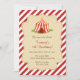 Födelsemeddelande med cirkus tält och kombination av rött färg.