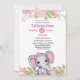 Bjud i Cute Elephant Rosa Blommigt Baby Shower-inb Inbjudningar