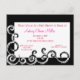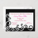 Denna inbjudan till roligt är svart på vitt och accentuerad med rosa text i ram i insida.