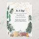Trädland temade duschinbjudan till pojke med campingplats och djur från hela vildmarken.