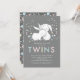 Tvillingbunnier ramlade med en stinkande andedräkt för blommigten för en neutralt babydusch för twillingar som satts på grått-bakgrund. Vänd över våra twillingar inbjudan för att se en samordnande blommigt tillbaka för en speciell beröring i extra.