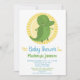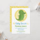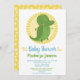 Den könsneutrala babyduschinbjudan har en söt alligator på gultens bakgrund.