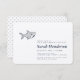 Babyduschinbjudningar är enkla och moderna med minimalistisk typografi i ett klassiskt teckensnitt. Hajen i tecknad baby är handdragen, stiliserad och söt. Polka dots på baksidan. Minimal färg, grått och mörk blått. Gender-neutralt. Originalkonst och design från sång.