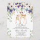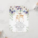 Rustic Lila Blommigt Hjort Baby Shower Inbjudan Söt könsneutralt skog hjort temat inbjudan till babyduschning. Den här designen har både en docka och en fawn och en arrangemang lila och vit blommigt.