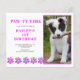 Budgeterad rosa, pawty time-hund-fotoinbjudan. Byt ut fotot mot ett eget husdjur och ändra texten.