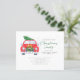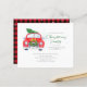 Vintage Red Car-illustration med Julgran Family Party-inbjudan som du enkelt kan anpassa för att skapa en unik inbjudan till party.