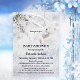 Drömlig och magisk könsmässig barnduschinbjudan med en nalle i en gnistrande snö-scen som tittar på silver snöflingor och ett snö täckte träd gren.