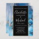 Den här inbjudan till budgetbröllop i elegant som namnteckning stil namn kan vara personlig med dina uppgifter i chic med ett svart och guld-band och blå agate-bakgrund. Designad av Thisisnotme©