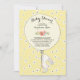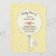 Tvättkanin som håller en stor ballong på gultens blommigt för en könsneutral babydusch. Besök vår butik för att se detta inbjudan i en mängd olika färg.
