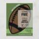 Vi presenterar inbjudan till den lilla nybörjarbudgeten för fotboll på födelsedagen. Denna livliga inbjudan kombinerar ett modernt estetiskt med ett stort amerikanskt fotbollstema. Programmet grönt färg betyder energi och tillväxt, medan lekfull typografi tillför en ungdomlig charm. Med en framstående fotbollsbild anger den tonen för ett idrottscentrerat firande. Diskret mönster och grafik ökar den visuella dragningskraften och ger temat upphetsning. Viktiga detaljer som datum, tid och plats visas tydligt tillsammans med grå taggar. Denna inbjudan är perfekt för föräldrar som söker en snyggt och contemporary för sitt barns fotbollstemanneterade födelsedagsfest och lovar en oförglömlig händelse. Missa inte den här basketbollens tema för att starta din lilla nybörjares födelsedagsfest utan en nyck i fickan.