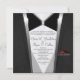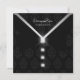 Gör en påstående av tidlös sofistikering med den här tuxedoinspirerade bröllopsinbjudan. Utformningen är riktad mot en pärldyna grått med trimen silke-stil, har en slående röd silke-toppfickor och en diamant kärlek-knapp som symboliserar enhet. Framsidan visar en förfinad tuxedo-butik med diamantknappar på en svart rik, en baksida eller, med en andra blick, den roliga silhuetten av ett martinistiskt glas med en diamantstjälk, som blandar klassisk elegans med en nyans av modern fläck. Perfekt för svarta affärer, glamorösa jordarter eller par som kärlek en aning gnistra och sofistikering.