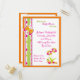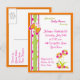 Från en katedral till en fjäril i den här designen. Till och med blommorna är fyllda med ljus orange, kalkgrönt och shock rosa som i hela portot för babyduschinbjudan. Det här vykortet har designat på fram- och baksidan och du kan fylla med värdinna-information eller lämna tomt.