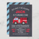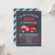 Blått och rött kalkbrädbrand lastbil eller brandmotorfödelsedag för en pojke. Konstruktionen har en lastbil- eller brandmotor på en skannad bakgrund i krita och blå diagonal stripe mönster gräns. Jag ville skapa en ny brandinbjudan till lastbil eftersom det är en omtyckt födelsedagsfest. Den här pojkens brandmotor eller brandinbjudan till lastbil är redo att vara personlig.