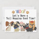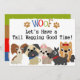 Svan Wagging Bra Time Hund Birthday-inbjudan, så söt och färglös, innehåller flera hundar av olika raser, brunt tass avtryck och text som lyder Woof Låt oss Ha en Svan Wagging Bra Time! Baksidan av den här söta inbjudan från barns födelsedag-partiet innehåller block med rött, grönt, blått och brunt med ytterligare tre små hundar och områden som du kan lägga till text för att anpassa med ditt barns födelsedagsfest!