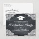 Inbjudan till vykort för studentfest. Svart kritbrädesbakgrund och vit snöre-dekor. Det finns fler artiklar i vår butik i stil. Du kan redigera designen ytterligare, ändra bakgrundstexten färg, typsnitt och lägga till extra genom att klicka på "Anpassa den här mallen" och sedan på länken "Klicka för att anpassa ytterligare".