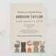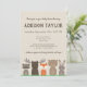 Inbjudan dina gäster till ditt skogsområde fick en babydusch med våra vackra, rustiska skogsinbjudningar. Djuren är ett räv, en mos, en björn, en tvättbjörn och en kanin i brunt och orange färg med en bakgrunds brännskador.