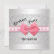 Grått- och rosa-födelsedagsinbjudan med text på baksidan som kan anpassas till kostym dina egna behov