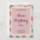 Fira en speciell dag med denna häpnadsväckande jordgubbsininspirerade inbjudan! Det här kortet har en charmerande design i röda nyanser och rosa och ger dig en uppfriskande och glatt beröring till party. Oavsett om det är en födelsedag för din lilla flicka, en frukttemad firande eller till och med en första födelsedag, kommer inbjudan att få dina gäster att bli upphetsade för evenemanget.