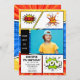 Redo till spara på dagen och fira? Inbjudan inspirerades av den klassiska tecknad bokar som vi alla älskade som barn. Bild: en mystisk skurk hotar att stjäla hela födelsedagskalan, och bara du kan samla ett team av superhjältar (dina vänner!) för att stoppa dem. Med fet popkonst som "OMG!" och "WOW!" är den här designen perfekt för din lilla superhjältes episka födelsedagskalas. Hämta redo till äventyr!