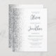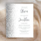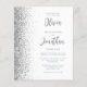 Den lämnat kant i eleganten är en modern bröllopsinbjudan från silver i glitter gräns. Anpassadet kombinerar grått-skript och sans serif typsnitt på vit bakgrund. Den omvända sidan har en matchande vit- och silver-design.
