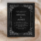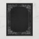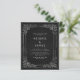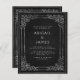 Denna inbjudan från elegant bröllop innehåller en ornerad vintage silver ram på en nödlidande svart bakgrund som påminner om ett antikt bok-täcke. Anpassa silver grått-texten med namn och bröllop. Utformningen av ram upprepas på kortets baksida.