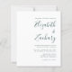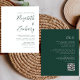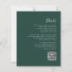 Den här enkla, moderna bröllopsinbjudan ger grönt på vit bakgrund. Lägg till bildens och bildens namn i snyggtens handskriftsgrafi och detaljerna i sans serif-teckensnitt. På baksidan finns utrymme för information om bröllop på en solid grönt-bakgrund, tillsammans med en QR-kodsgäst som kan söka efter webbplatsen och OSAN.