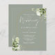 Den här eleganten botaniska gienery löv bröllopsinbjudan kan vara personlig med din information i chic typografi med ditt monogram initialer på motsatt sida på en skam grönt bakgrund. Designad av Thisisnotme©