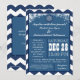 Den moderna vinterblåa schevron mönster-snöflingan Bröllopsinbjudan. Perfekt för ett bröllop under vintermånaderna! Den här inbjudan fungerar underbart för ett vinterbröllop utan en överdriven jul eller helgdag känsla!