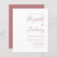 Den här enkla moderna bröllopsinbjudan innehåller dammig ro-text på vit bakgrund. Lägg till bildens och bildens namn i snyggtens handskriftsgrafi och detaljerna i sans serif-teckensnitt. Den omvända sidan ger plats för bröllop-information på en solid dammig ro-bakgrund, tillsammans med en QR-kodgäst som kan söka på din webbplats och OSA. Obs! Kuvert inkluderas inte automatiskt i dessa budgetinbjudningar, så kom ihåg att välja alternativet "vita kuvert"!