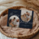 Den här moderna och minimalistiska dubblan med platta julkort har handskrivna manustypografi och fotokollage. Infoga dina favoritfoton och anpassa dem efter dina önskemål. Foton efter prostooleh / Freepik.