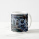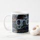 Mugg för farfar har abstrakt art mönster i färg av blått, svart, grått och har "Grampy" skriven i blått.