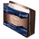 En falsk kopparfärgad bakgrund med marinblå agat, marmorsten. Personifiera och lägg till datum och namn. Namnet skrivs med en modern handskriven stilsnack.