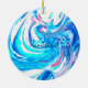 Blå akrylfärgad Abstrakt Splatter Swirl Julgransprydnad Keramik