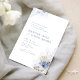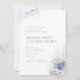 Elegant undervattens tema strandbröllopsinbjudan med dammig blå akvarell korall, sjöstjärna & snigelskal, stilfullt manus och klassisk typsnitt traditionell formulering evenemangsinformation, modern och romantisk, bra för sommarens havstema strandbröllop, vinter tropiskt destination bröllop, kustnära havstema bröllop.