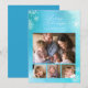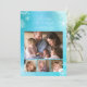Det här julkortet har dina foton och orden "God Jul" i trendig stil och snöflingor mot en blå akvarellbakgrund. Baksidan av kortet har en enfärgad blå bakgrund.