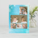 Det här semestkortet har dina foton och orden "Let it Snow" i modern skrivstil och snöflingor mot en blå akvarellbakgrund. Baksidan av kortet har en enfärgat blå bakgrund.