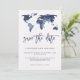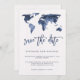 Blå akvarell världskarta | Bröllop Save the Date Spara Datumet