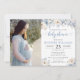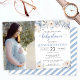 Blå akvarellblomma baby boy shower foto inbjudningar