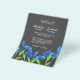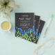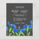 Blå moderna akvarellvilda blommor. Styligt bröllop. Elegant svart blommig budgetinbjudan. Trendigt val för sommarbröllop.