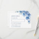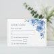 Det här bröllopssvarskortet har blå akvarellblommor på vit bakgrund. Matchande inbjudan finns tillgänglig.