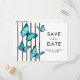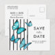 blåfjärilarbröllopmodern akvarellstiligtrendigspara datumromantisksvarta vita ränderenkel