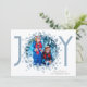 Copyright © Socialite Designs Inc. & LICENCORS - Detta vackra julkort har en blå akvarellbladskrans för "O" i GLÄDJE. Lägg till ditt speciella foto och text för att önska din familj och vänner en God Jul.