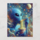 En blå utomjording som äter noodlar tomt i tillfällen-kortet