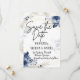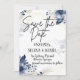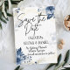 Meddela din speciella dag med stil med vår Blommig Bröllop Save the Date med vackra blå blommor och frodiga blad på en felfri vit bakgrund. Denna eleganta design sätter tonen för din bröllopsfirande och säkerställer att dina gäster markerar sina kalendrar för den stora dagen. Med sin tidlösa charm och sofistikerade estetik är detta save the date-kort det perfekta sättet att dela din glädje med nära och kära.