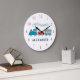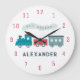 Denna söta "alla ombord" ångloksklocka för pojkrum/barnkammare har barnets namn på vit bakgrund med ånglok i blått och rött. Anpassa den efter dina behov. Du hittar matchande produkter i min butik.