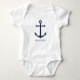 Modern minimalistisk Nautical Baby Jersey Bodykostym har marinblå ankarpunkt med personlig namn i marinblå modern sans serif font stil på vit kroppsdräkt. Perfekt som babyduschgåva till pojke.
