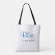 Tvätta till väskan med en design som anger färg. Texten är "Blue is my färg!" i en söt typography mix in blue script and black.