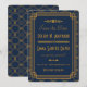 Dessa save the dates har en blå och guld färgpalett, en geometrisk ram, geometriska mönster och andra stilistiska detaljer som alla är inspirerade av Art Deco och de glada tjugotalet. Du kan anpassa textfälten efter eget tycke.