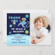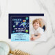 Blå astronaut rymden födelsedagsfoto tack kort